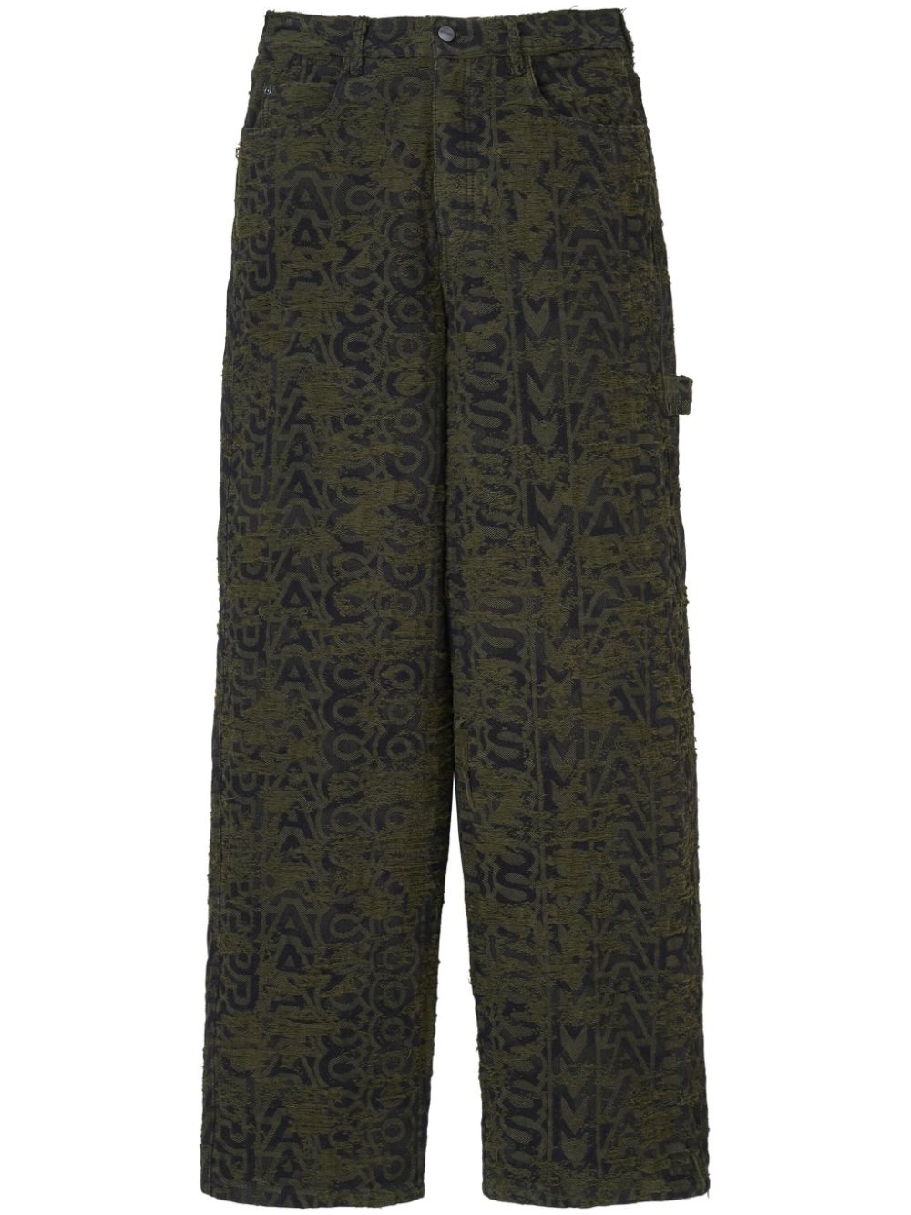 monogram-print distressed wide-leg jeans Highlights - Dark green/black - Cotton - Monogram pattern - Distressed finish - Mid-rise - Belt loops - Logo patch to the rear - Classic five pockets - Slip pockets to the sides - Wide leg Imported Composition Outer: Cotton 100% Lining: Cotton 100% Washing instructions Dry Clean Only