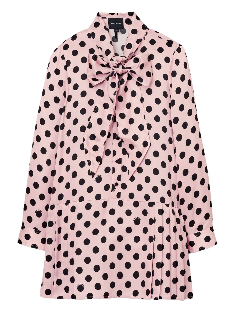 polka-dot pattern pleated mini dress Highlights - Pink - Polka dot pattern - Pleated skirt - Bow tie neck - Long sleeves - Button fastening Imported Composition Viscose 100% Washing instructions Dry Clean Only