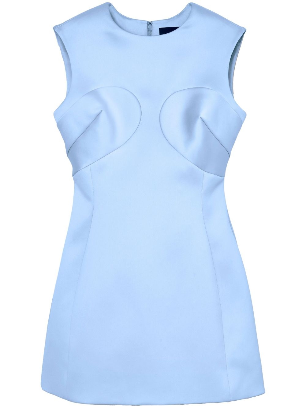 satin-finish mini dress Highlights - Baby blue - Rear zip fastening - Round neck - Sleeveless - Straight hem Imported Composition Polyester 100%