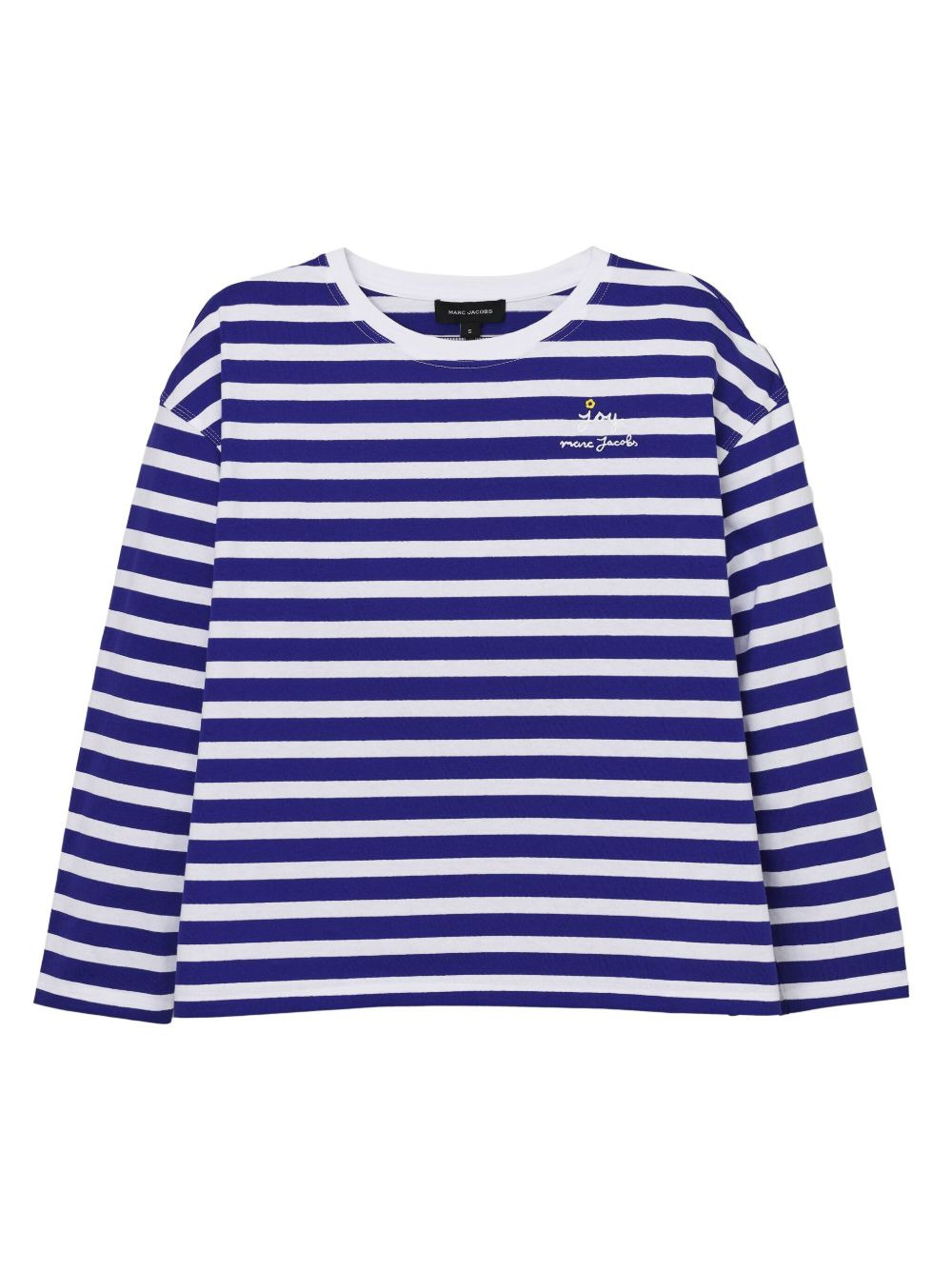 striped flower-patch top Highlights - Royal blue - White stripes - Flower elbow patches - Long sleeves - Embroidered detail - Round neck Imported Composition Cotton 100% Washing instructions Dry Clean Only