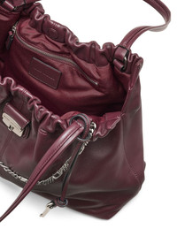 The Cristina chain-embellished drawstring tote bag Highlights - Dark plum - Drawstring closure - Leather construction - Chain detail - Top handles - Key charm Imported Composition Lining: Fabric 100% Outer: Nappa Leather 100% SIZE & FIT Measurement DEPTH 5.9 in(15 cm) HANDLE 11.02 in(28 cm) HEIGHT 11.02 in(28 cm) WIDTH 16.92 in(43 cm)