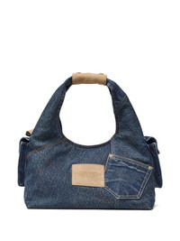 The Denim suede-detail pocket tote bag