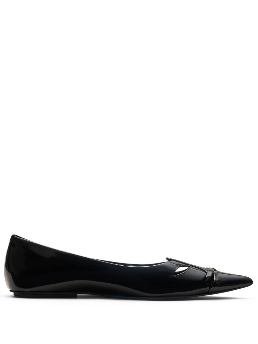 The Kat ballerina shoes Highlights - Black - Calf leather - Smooth grain - Slip-on style - Cut-out detailing - Bow detailing - Pointed toe - Branded leather insole - Flat sole Imported Composition Sole: Leather 100% Outer: Calf Leather 100% Lining: Polyurethane 100% SIZE & FIT Measurement HEEL 0.19 in(0.5 cm)