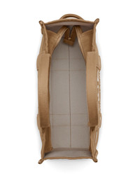 The Large Tote bag Durable and practical with a typically heavy dose of branding, The Jacquard Tote from Marc Jacobs is crafted in camel-brown canvas and woven with the style and designer name at the front. Taped trims lend industrial detail, while a logo patch at the back states the band’s NYC headquarters and debut year. Highlights - Camel brown - Canvas - Jacquard logo motif - Logo-tape detailing - Logo patch to the rear - Top zip fastening - Two top handles - Main compartment - Internal logo patch - Internal zip-fastening pocket - Multiple internal slip pockets Imported Composition Outer: Cotton 64%, Polyester 36% SIZE & FIT Measurement DEPTH 5.9 in(15 cm) HANDLE 6.69 in(17 cm) HEIGHT 11.81 in(30 cm)