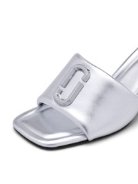 The Metallic J leather sandals Highlights - Silver-tone - Leather - Metallic finish - Logo plaque - Square open toe - Branded footbed - Mid heel - Leather sole Imported Composition Lining: Leather 100% Sole: Leather 100% Outer: Leather 100%