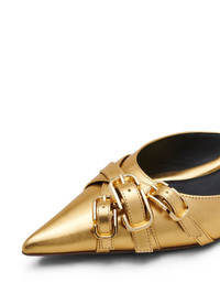The Emma kitten-heel mules Highlights - Gold-tone - Leather - Metallic finish - Decorative buckle detail - Pointed toe - Branded insole - Kitten heel Imported Composition Outer: Leather 100% Lining: Leather 100% Sole: Leather 100% SIZE & FIT Measurement HEEL 1.37 in(3.5 cm)