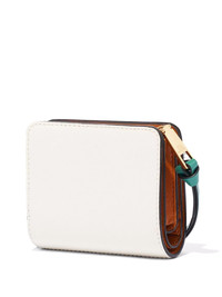 The Mini Compact wallet black/white/orange leather colour-block design gold-tone logo plaque embossed internal logo snap button fastening coin pocket internal card slots Imported Composition Outer: Calf Leather 100% SIZE & FIT Measurement LENGTH 3.54 in(9 cm) WIDTH 4.13 in(10.5 cm)