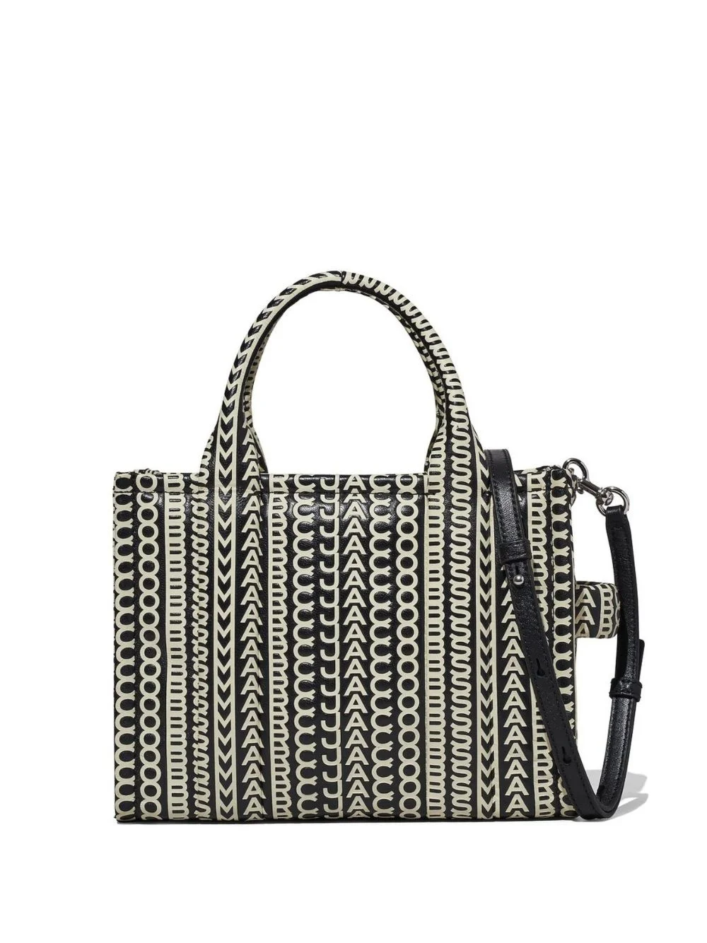 The Monogram Leather Small Tote bag Highlights - Black/beige - Leather - Monogram pattern - Logo patch to the rear - Adjustable detachable shoulder strap - Two top handles - Single flat side handle - Top zip fastening - Main compartment - Internal zip-fastening pocket Imported Composition Outer: Leather 100%