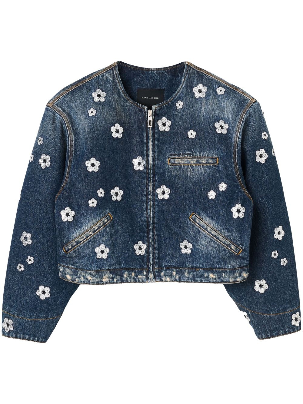 The Sequin Daisy Cropped jacket Highlights - Indigo blue - Front zip fastening - Chest welt pocket - Two diagonal pockets to the sides - Press-stud fastening cuffs Imported Composition Cotton 100% Washing instructions Read Manufacturer Guidelines