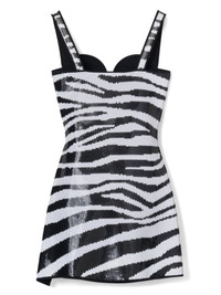 The Zebra dress Highlights - Black/white - Zebra print - Sequin embellishment - Sweetheart neck - Sleeveless - Thigh-length - Short slit - Straight hem Imported Composition Viscose 61%, Nylon 38%, Elastane 1%