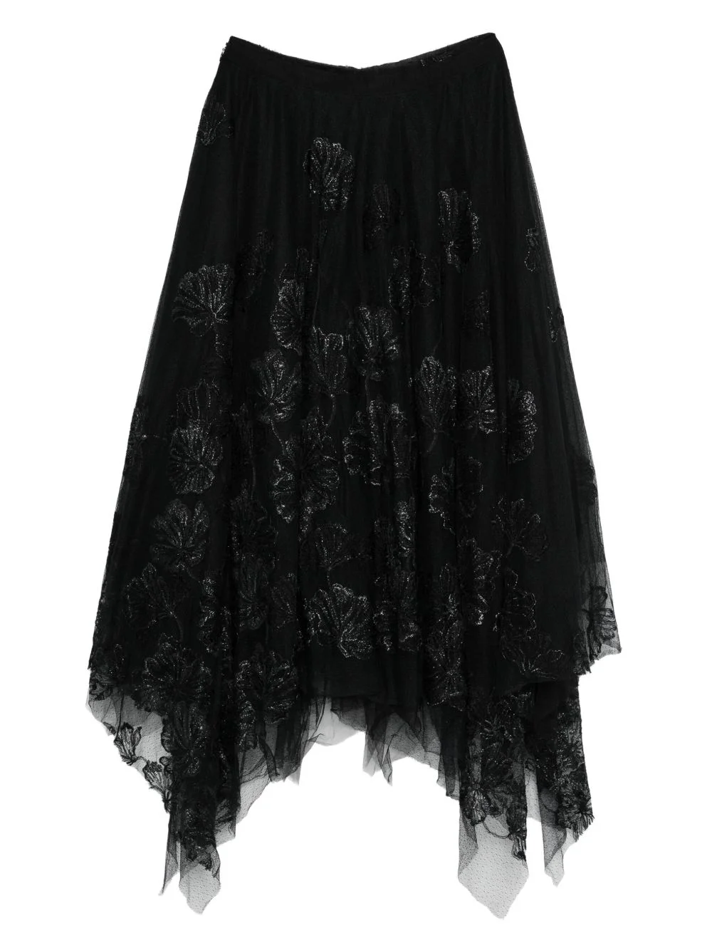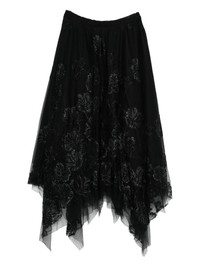 asymmetric skirt Highlights - Black - Floral motif - Asymmetric hem - Lace trim - Tulle overlay - Elasticated waistband Imported Composition Fabric 100% Washing instructions Read Manufacturer Guidelines