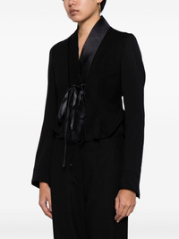 asymmetric tie-fastening jacket Highlights - Black - Wool - Satin trim - Shawl lapels - Front tie fastening - Long sleeves - Buttoned cuffs - Side slits - Asymmetric hem Made in France Composition Wool 100% SIZE & FIT Model measurements Height 5 ft 10 in(1.77 m) Bust/Chest 31.49 in(80 cm) Hips 35.43 in(90 cm) Waist 25.19 in(64 cm) Washing instructions Dry Clean Only