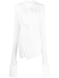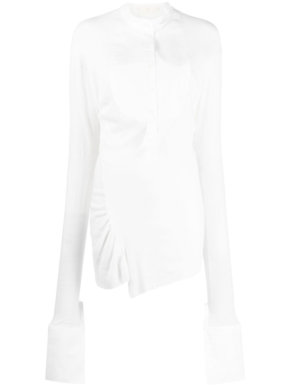 knitted-panel poplin shirt Highlights - White - Cotton - Poplin texture - Knitted panels - Gathered detailing - Band collar - Front button fastening - Extra-long sleeves - Split cuffs - Asymmetric hem Made in France Composition Body: Cotton 100% Outer: Modal 95%, Elastane 5% SIZE & FIT Model measurements Height 5 ft 10 in(1.77 m) Bust/Chest 31.49 in(80 cm) Hips 35.43 in(90 cm) Waist 25.19 in(64 cm) FittingInformation Designed for a slim fit that sits just away from the body offering a close yet comfortable fit Constructed with additional length on the sleeve Made from a midweight non-stretch fabric This piece fits true to size – take your usual size Washing instructions Dry Clean Only
