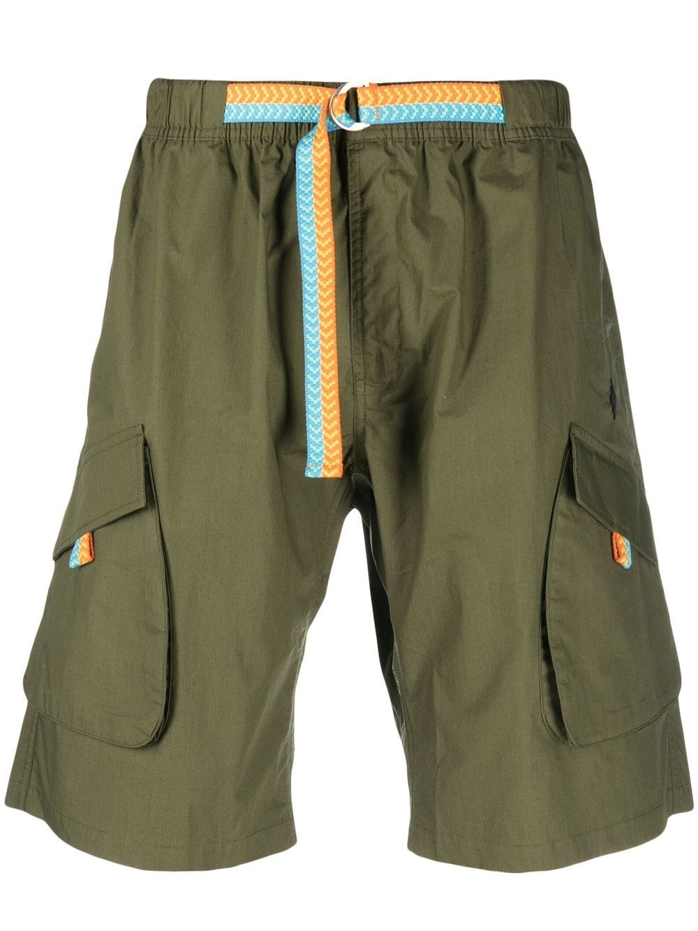 contrasting-belt cotton cargo shorts khaki/blue/orange cotton embroidered logo at the leg D-ring buckle belt elasticated waistband two side cargo pockets two rear jetted pockets wide leg knee-length Imported Composition Cotton 100%, Polyester 100% SIZE & FIT Model measurements Height 6 ft 2 in(1.87 m) Bust/Chest 36.41 in(92.5 cm) Hips 37 in(94 cm) Waist 29.52 in(75 cm) Washing instructions Machine Wash