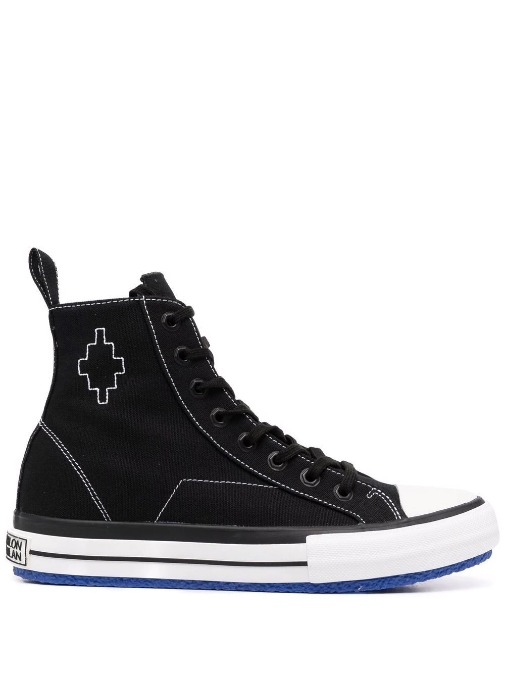 embroidered cross high vulcanized sneakers Marcelo Burlon County of Milan's high vulcanized sneakers is unmistakeably a creation from the Italian brand which features both a white embroidered cross motif towards the side and a boldly branded heel counter. Imported Composition Outer: Cotton 100% Lining: Cotton 100% Sole: Rubber 100%