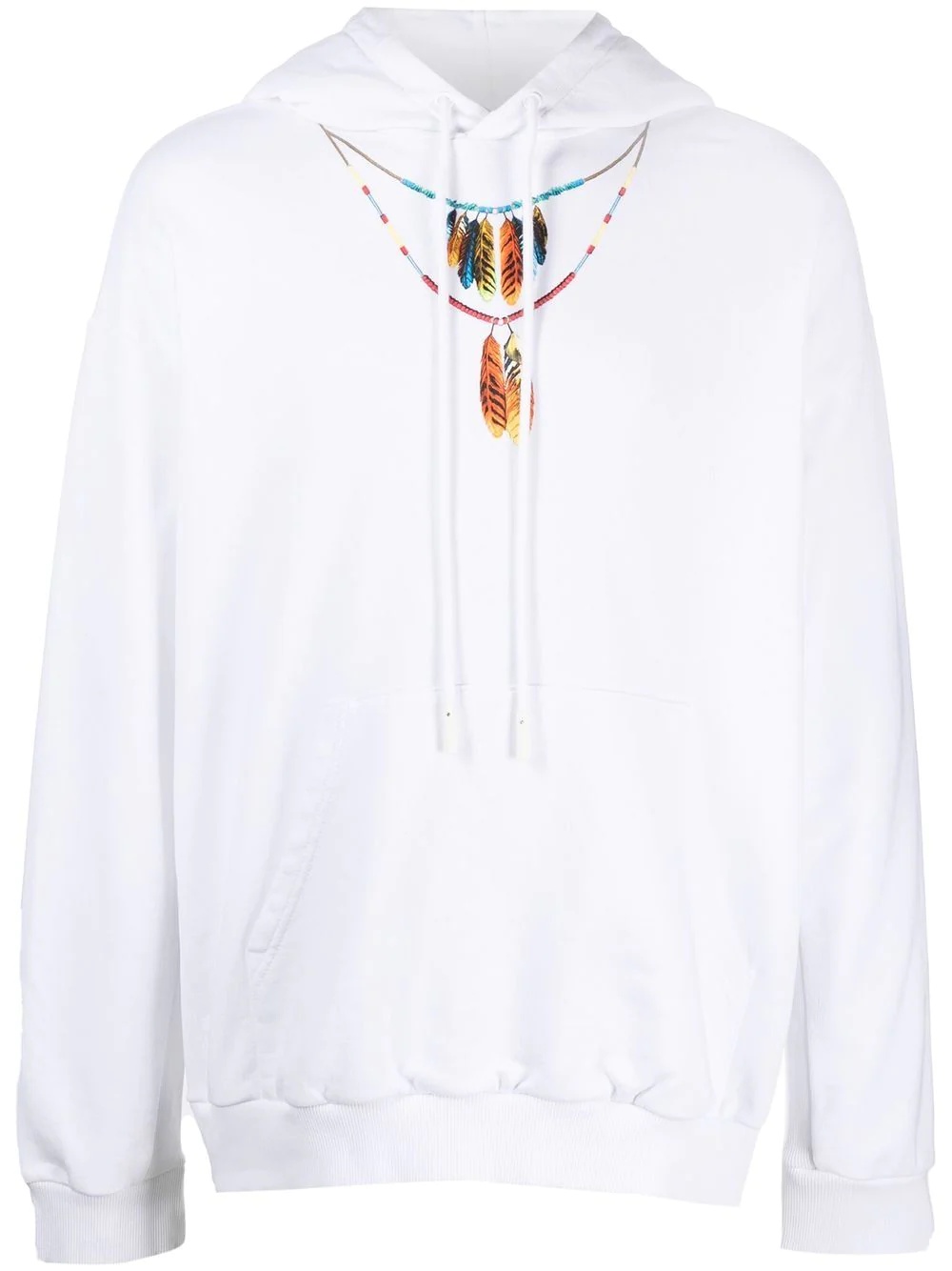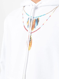 Feathers Necklace cotton hoodie Marcelo Burlon County of Milan's feather motif is an instantly recognisable trademark of the brand that reflects their artful creativity. The iconic motif is seen at the neckline of this white cotton hoodie, offering a pop of colour to the piece. Imported Composition Cotton 100%, Polyester 100% SIZE & FIT Model measurements Height 6 ft 1 in(1.86 m) Bust/Chest 37.4 in(95 cm) Hips 34.64 in(88 cm) Waist 29.13 in(74 cm) Washing instructions Machine Wash