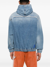 fringed denim hooded jacket Highlights - Blue - Cotton blend - Denim - Mid-wash - Classic hood - Long sleeves - Fringed trim - Elasticated cuffs - Two front pouch pockets - Rear elasticated hem - Front zip fastening Made in Italy Composition Cotton 89%, Polyester 11% SIZE & FIT Model measurements Height 6 ft 2 in(1.87 m) Bust/Chest 36.22 in(92 cm) Hips 37 in(94 cm) Waist 27.95 in(71 cm) FittingInformation Designed to be unstructured, offering a loose fit throughout The elasticated hem allows for movement and a comfortable fit Constructed from stretch denim, this piece offers a stretch fit with durability This piece fits true to size – take your usual size