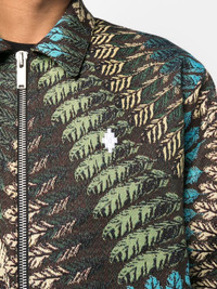 leaf-jacquard bomber jacket brown/green patterned jacquard embroidered logo at the chest spread collar front zip fastening long sleeves straight hem Made in Italy Composition Outer: Polyester 60%, Cotton 40% Lining: Polyester 65%, Cotton 35% SIZE & FIT Model measurements Height 6 ft 2 in(1.87 m) Bust/Chest 36.22 in(92 cm) Hips 37 in(94 cm) Waist 27.95 in(71 cm) FittingInformation This piece fits true to size. We recommend you get your regular size Cut for a relaxed fit Made with a mid-weight non-stretch fabric Washing instructions Machine Wash