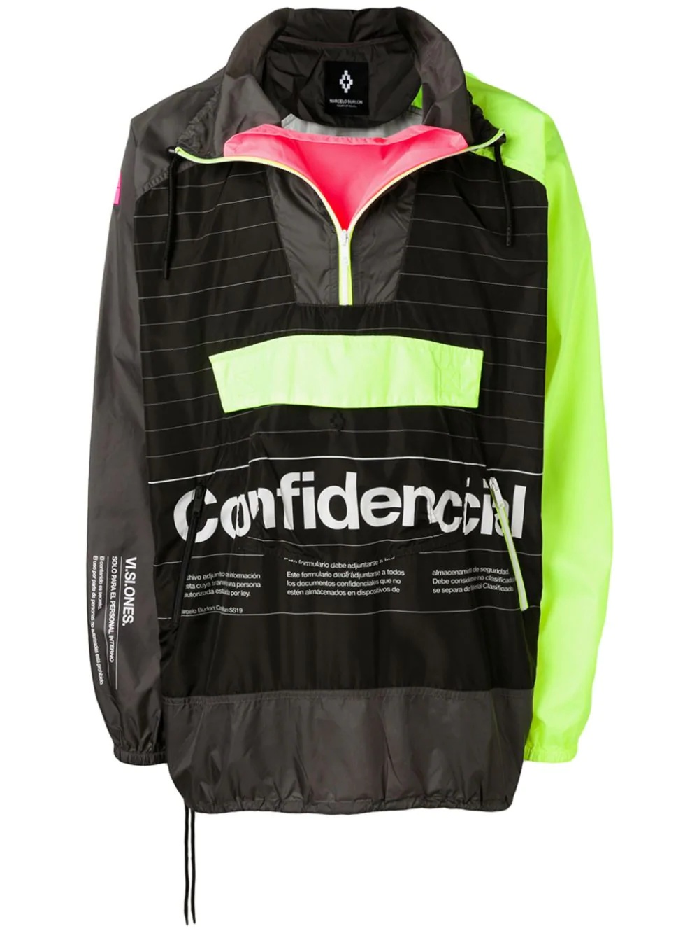 Lettering windbreaker Explore the new looks from the Marcelo Burlon menswear collection. Inspired by the “Close Encounters of the Third Kind” movie and other retro science fiction influences, the brand’s new collection is as cool as ever. Featuring a high standing collar, a front zip fastening, side zipped pockets, long sleeves, elasticated cuffs, a straight hem and an all-over print. Made in Italy Composition Polyamide 100%, Polyester 100% SIZE & FIT Model measurements Height 6 ft 2 in(1.89 m) Bust/Chest 37.79 in(96 cm) Hips 37 in(94 cm) Waist 29.92 in(76 cm) Washing instructions Machine Wash
