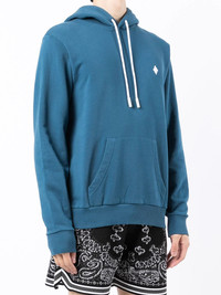 logo-embroidered drawstring hoodie blue/white cotton embroidered logo at the chest drawstring hood front pouch pocket long sleeves straight hem Imported Composition Cotton 100% SIZE & FIT Model measurements Height 6 ft 0 in(1.83 m) Bust/Chest 37.79 in(96 cm) Hips 37 in(94 cm) Waist 30.31 in(77 cm) FittingInformation This piece fits true to size. We recommend you get your regular size Cut for a loose fit Made with a mid-weight fabric Washing instructions Machine Wash