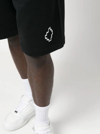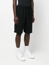 logo-print detail bermuda shorts jet black cotton logo print at the leg elasticated drawstring waistband two side inset pockets rear welt pocket Imported Composition Cotton 100% SIZE & FIT Model measurements Height 6 ft 0 in(1.84 m) Bust/Chest 35.82 in(91 cm) Hips 37 in(94 cm) Waist 28.34 in(72 cm) FittingInformation This piece fits true to size. We recommend you get your regular size Designed for a slim fit at the waist and loose over the leg Made with a mid-weight fabric Washing instructions Machine Wash