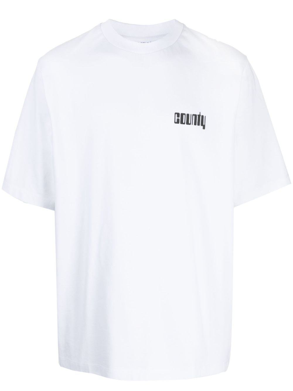 logo-print T-shirt Marcelo Burlon's love of nightlife and club culture seeps into the designs of his eponymous brand, often in the form of vibrant, bold motifs. A case in point, this simple white T-shirt is emblazoned with an illustration of a godlike creature dressed in Marcelo Burlon County of Milan apparel, sitting atop black logo lettering replicated at the chest. Highlights - White - Stretch-cotton - Logo print at the chest - Logo print to the rear - Crew neck - Short sleeves - Straight hem Imported Composition Cotton 95%, Elastane 5% SIZE & FIT Model measurements Height 6 ft 2 in(1.87 m) Bust/Chest 31.49 in(80 cm) Hips 37.79 in(96 cm) Waist 27.95 in(71 cm) FittingInformation Designed to be unstructured, offering a loose fit throughout Made from a midweight non-stretch fabric, this piece offers minimal elasticity when worn This piece fits true to size – take your usual size Washing instructions Machine Wash