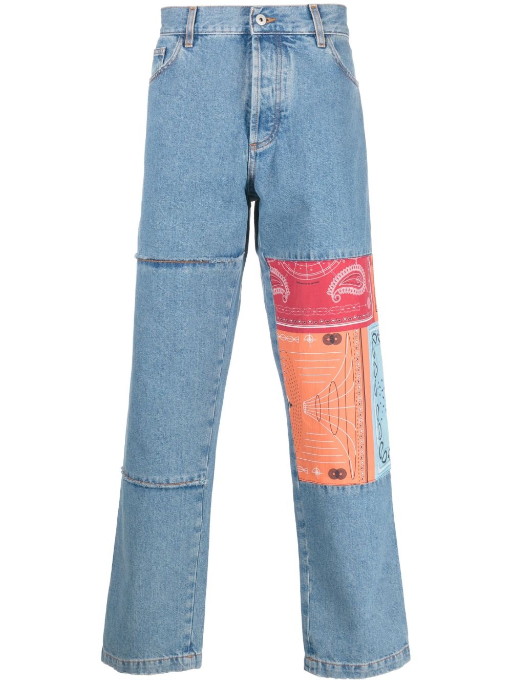 patchwork-detailing straight-leg jeans Marcelo Burlon County of Milan's creativity keeps pushing boundaries each season. These straight-leg jeans from the SS23 collection are crafted from a cotton blend and decorated with patchwork detailing at the front and back. Highlights - Indigo blue - Cotton blend - Mid-wash - Patchwork detailing - Logo patch to the rear - Straight leg - Mid-rise - Belt loops - Front button and zip fastening - Classic five pockets Made in Italy Composition Outer: Polyamide 100%, Cotton 68%, Acrylic 19%, Polyester 13% Lining: Polyester 65%, Cotton 35% SIZE & FIT Model measurements Height 6 ft 1 in(1.85 m) Bust/Chest 35.82 in(91 cm) Hips 37.79 in(96 cm) Waist 29.13 in(74 cm) FittingInformation Designed for a tapered leg, these jeans allow a loose unrestricted fit over the leg with a closer fit towards the ankle Sturdy and hard-wearing, this denim piece offers no stretch This piece fits true to size – take your usual size Washing instructions Machine Wash