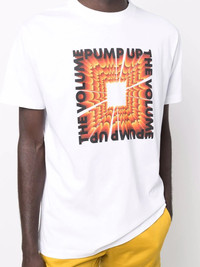 Pump Up the Volume slogan T-shirt white/orange organic cotton ribbed detailing slogan print to the front logo print to the rear round neck short sleeves Imported Composition Organic Cotton 100%, Polyester 100% SIZE & FIT Model measurements Height 6 ft 2 in(1.87 m) Bust/Chest 36.41 in(92.5 cm) Hips 37 in(94 cm) Waist 29.52 in(75 cm) FittingInformation This piece fits true to size. We recommend you get your regular size Cut for a relaxed fit Made with a mid-weight fabric Washing instructions Machine Wash