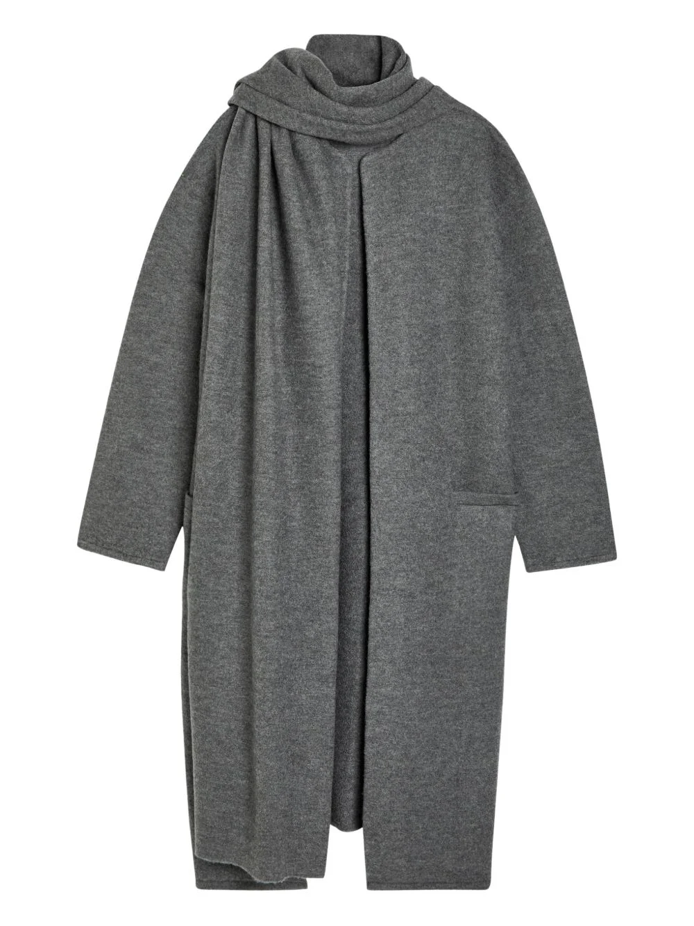 draped merino-wool coat Highlights - Charcoal grey - Draped design - Shawl collar - Front patch pockets - Mid-length - Long sleeves Imported Composition Merino 100% Washing instructions Hand Wash