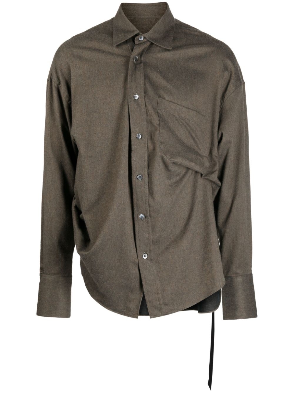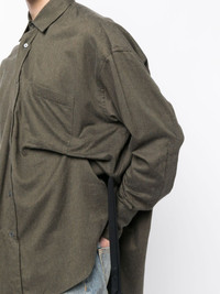 spread-collar cotton shirt Highlights - Khaki - Cotton - Gathered detailing - Spread collar - Front button fastening - Chest patch pocket - Long sleeves - Buttoned-cuff sleeves - Curved hem - When buying this unisex item, keep in mind that it is graded in standard men's sizing. Made in Italy Composition Cotton 100% SIZE & FIT Model measurements Height 6 ft 2 in(1.89 m) Bust/Chest 37.4 in(95 cm) Hips 36.61 in(93 cm) Waist 28.34 in(72 cm) FittingInformation This unisex piece is designed for a loose fit whether you usually select women's or men's sizes Made from a midweight non-stretch fabric