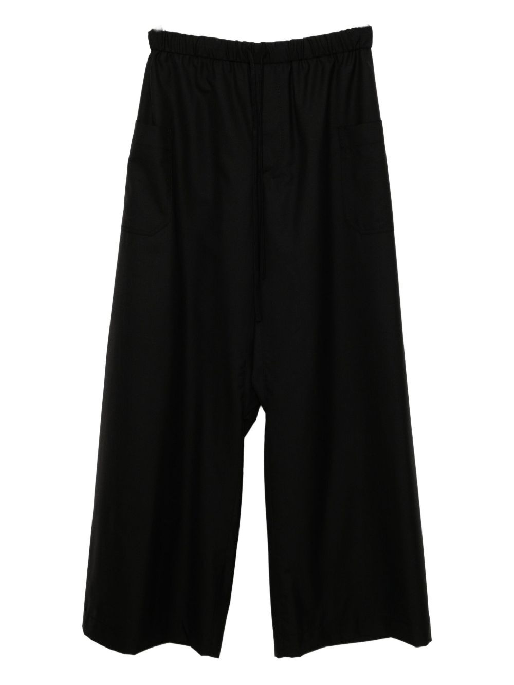 wool wide-leg trousers Highlights - Black - Elasticated waistband - Two side patch pockets - Two rear patch pockets Imported Composition Wool 100% Washing instructions Dry Clean Only
