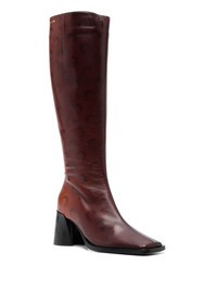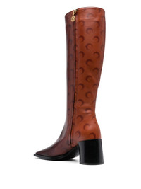70mm airbushed-leather knee boots Marine Serre's iconic crescent moon print decorates these airbrushed leather knee boots in a tonal design. The brand described the use of the symbol as an emblem of a 'new progressive fashion era'. Highlights - Rust brown - Lambskin - Crescent moon print - Branded zip puller - Side zip fastening - Square toe - Knee-high - Gradient effect - Mid sculpted heel Made in Italy Composition Lining: Lamb Skin 100% Outer: Lamb Skin 100% Sole: Acrylonitrile Butadiene Styrene (ABS) 100%, Calf Leather 100% SIZE & FIT Measurement CIRCUMFERENCE 9.44 in(24 cm) HEEL 2.75 in(7 cm) HEIGHT 15.74 in(40 cm)