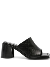 75mm leather sandals Highlights - Black - Calf leather - Debossed logo to the front - Signature moonogram pattern - Slip-on style - Square open toe - Branded leather insole - High stacked heel - Rubber sole Made in Italy Composition Lining: Calf Leather 100% Outer: Calf Leather 100% Sole: Calf Leather 100%, Rubber 100% SIZE & FIT Measurement HEEL 2.95 in(7.5 cm) Sole height 0.59 in(1.5 cm)