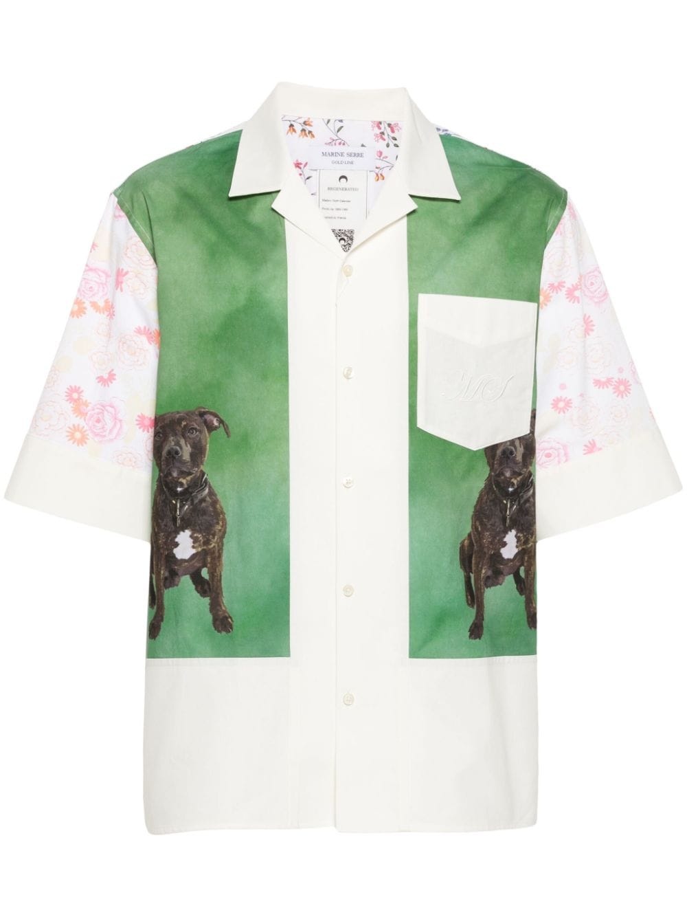 Calendar-print panelled shirt Highlights - White/multicolour - Cotton - Panelled design - Mix print - Dog print - Floral print - Calendar-print to the rear - Embroidered logo at the chest - Camp collar - Front button fastening - Short sleeves - Chest patch pocket - Straight hem - When buying this unisex item, keep in mind that it is graded in standard men's sizing. Imported Composition Cotton 100% SIZE & FIT Model measurements Height 5 ft 9 in(1.76 m) Bust/Chest 31.88 in(81 cm) Hips 35.43 in(90 cm) Waist 24.8 in(63 cm) FittingInformation This piece is unisex – if you usually select men's sizing expect a loose fit throughout; if you usually select women's sizes, expect an oversized fit Made from a midweight non-stretch fabric