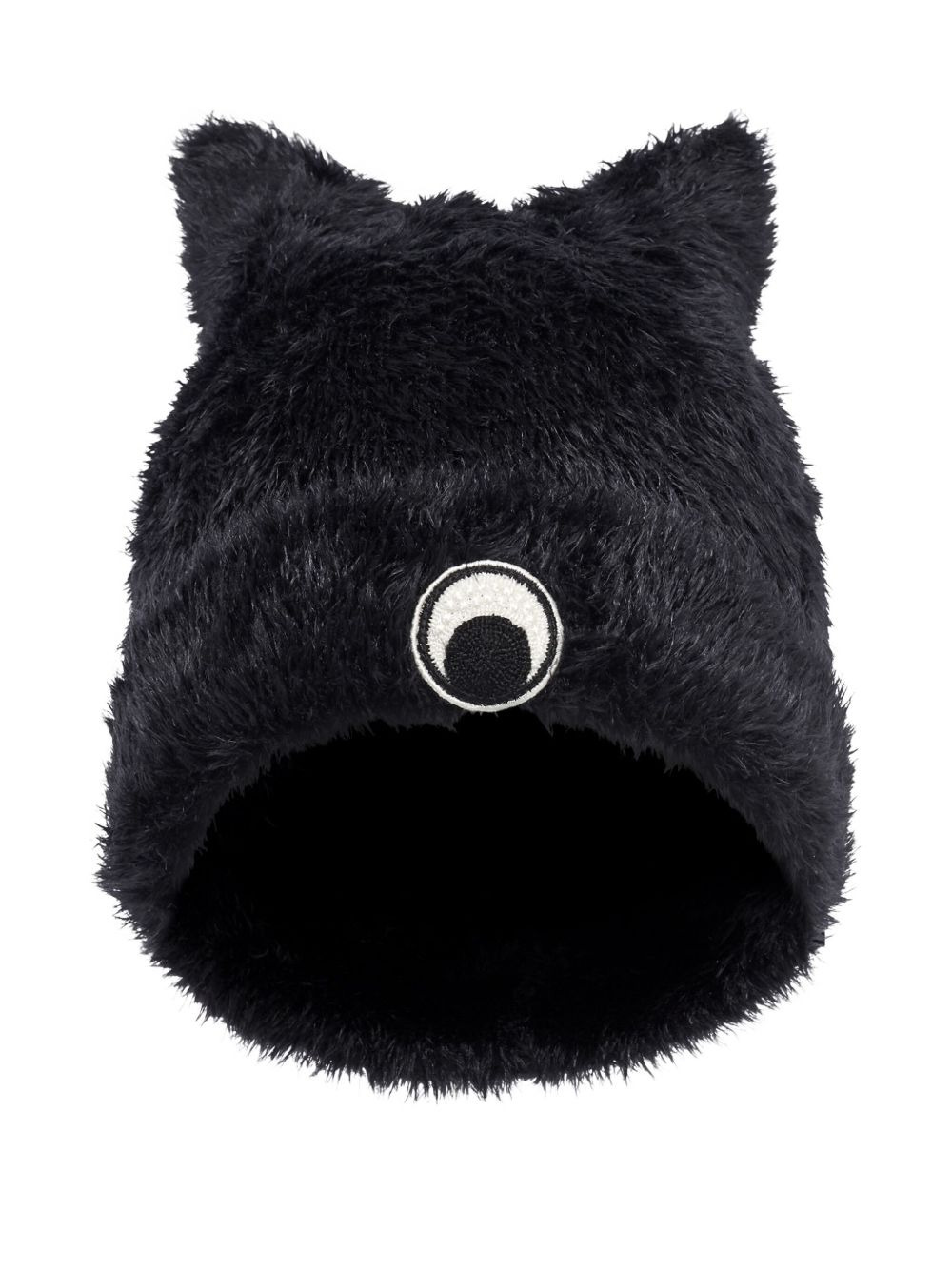cat-ear fluffy beanie hat Highlights - Black - Fluffy texture - Cat ears - Embroidered crescent moon detail - Pull-on style Made in Italy Composition Polyamide 100%