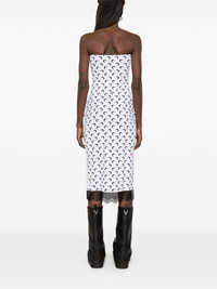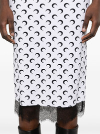 Crescent Moon bustier midi dress Highlights - White - Strapless - Lace trim - This piece comes complete with a protective dust bag. Imported Composition Recycled Polyamide 88%, Recycled Elastane 12% SIZE & FIT Model measurements Height 5 ft 11 in(1.8 m) Bust/Chest 32.67 in(83 cm) Hips 36.22 in(92 cm) Waist 24.4 in(62 cm) FittingInformation Designed for a close fit throughout Made from a lightweight stretch fabric, this piece offers elasticity and flexibility when worn