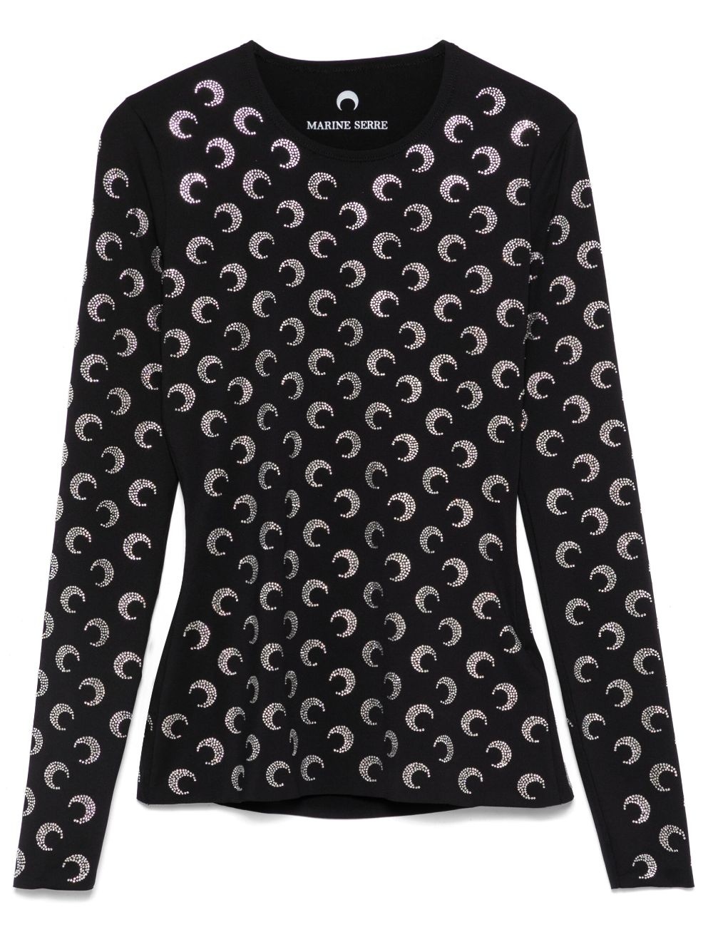 Recycled Moon Strass Jersey Second Skin Crewneck Top