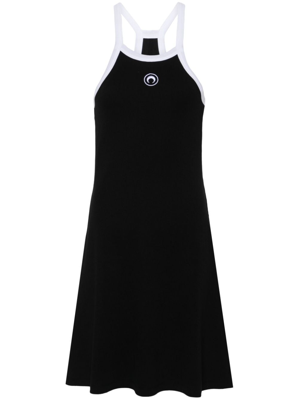 Crescent Moon-embroidered mini dress Highlights - Black - Organic cotton blend - Fine ribbed - Flared hem - Contrasting border - Crew neck - Sleeveless - Thin shoulder straps - Crescent moon embroidery - Embroidered logo at the chest - Logo patch to the rear - Logo patch to the rear Made in Italy Composition Organic Cotton 95%, Elastane 5% SIZE & FIT Model measurements Height 5 ft 10 in(1.77 m) Bust/Chest 33.07 in(84 cm) Hips 37 in(94 cm) Waist 24.8 in(63 cm) FittingInformation Designed for a close fit at the chest and waist with a loose fit at the hip Made from a midweight stretch fabric, this piece offers elasticity and flexibility when worn This piece fits true to size – take your usual size