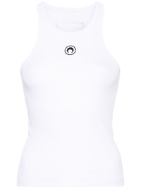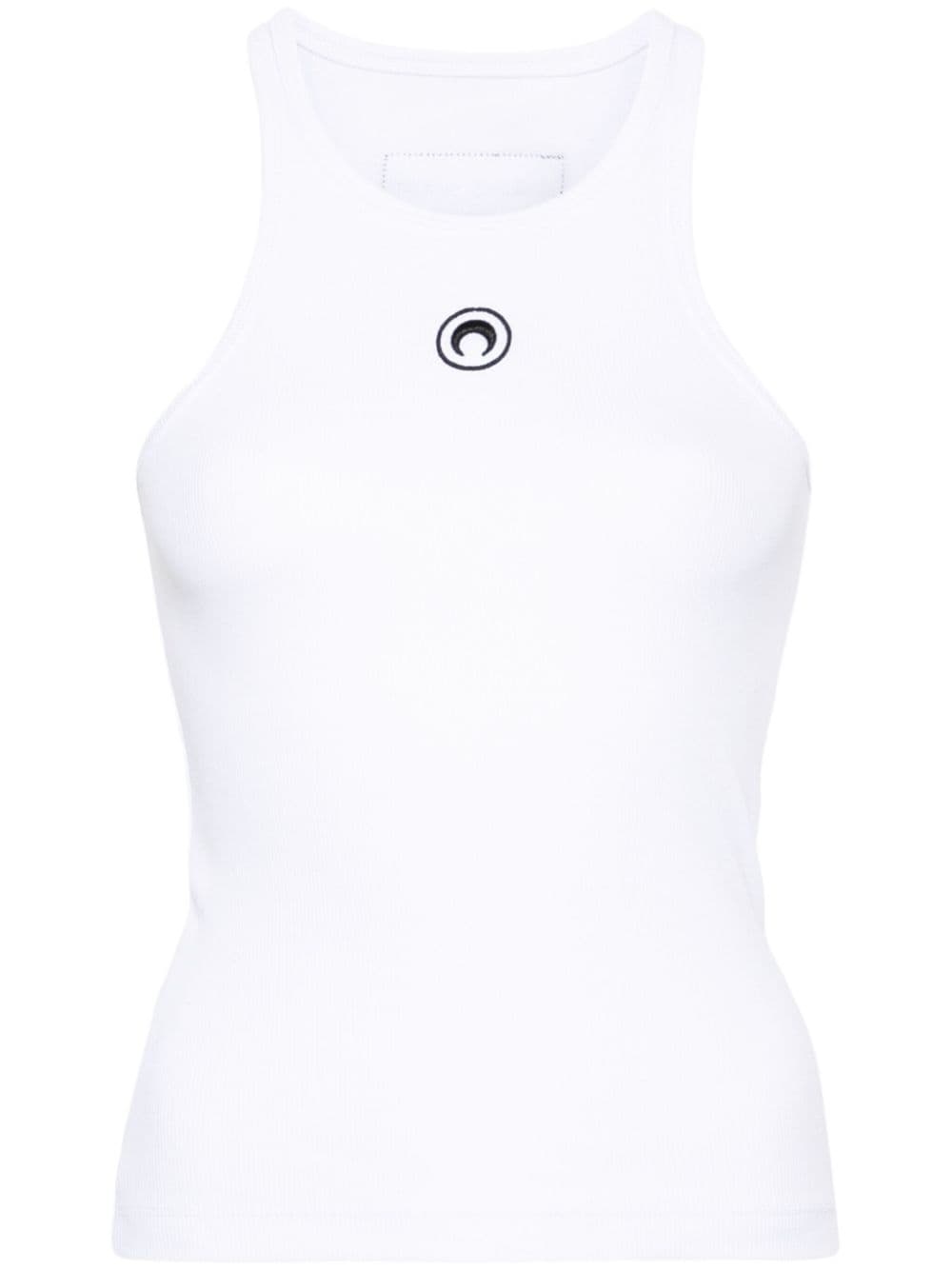 Crescent Moon-embroidered tank top Marine Serre puts its stamp on this sporty white ribbed tank top, embroidering the chest with its iconic Crescent Moon emblem in contrasting black to match the logo applique at the back. It’s cut from organic cotton with a round neckline and racerback. Highlights - White - Organic cotton - Fine ribbed - Crescent moon embroidery - Logo patch to the rear - Round neck - Sleeveless - Racerback - Straight hem Imported Composition Organic Cotton 95%, Spandex/Elastane 5% SIZE & FIT Model measurements Height 5 ft 11 in(1.8 m) Bust/Chest 30.7 in(78 cm) Hips 35.03 in(89 cm) Waist 24.4 in(62 cm) Measurement LENGTH 20.47 in(52 cm) BUST 24.4 in(62 cm) FittingInformation Designed for a slim fit that sits just away from the body offering a close yet comfortable fit Made from a midweight stretch fabric, this piece offers elasticity and flexibility when worn This piece fits true to size – take your usual size Washing instructions Machine Wash