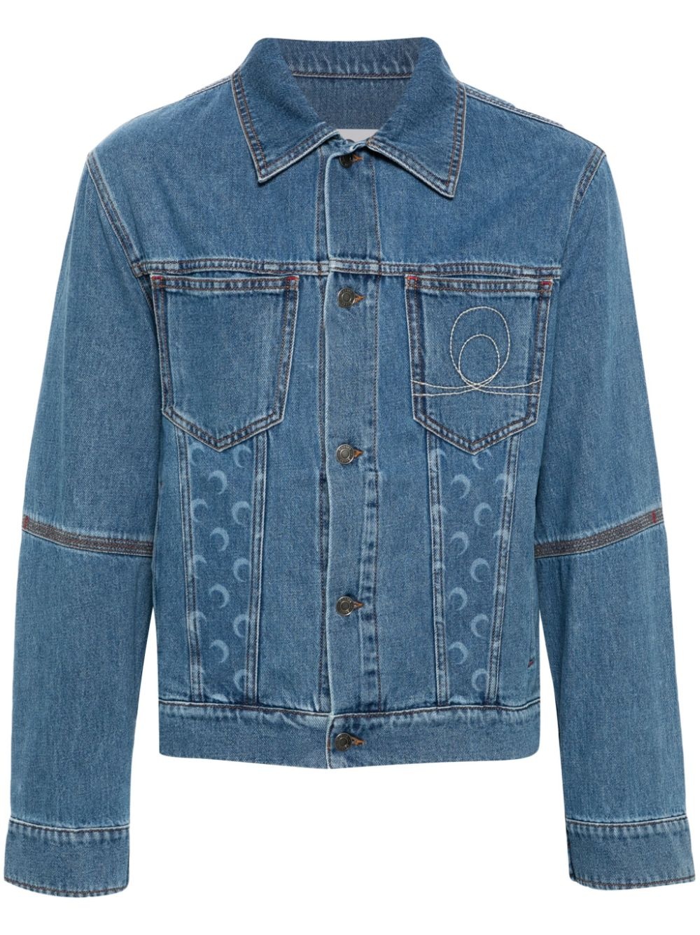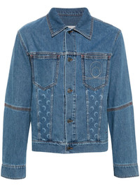 crescent moon-print denim jacket Highlights - Light blue - Cotton - Denim - Contrast stitching - Panelled design - Spread collar - Long sleeves with buttoned cuffs - Two front patch pockets - Two side welt pockets - Crescent moon print to the front - Waist tabs - Straight hem - Front button fastening Made in Italy Composition Outer: Cotton 100% Lining: Cotton 100% SIZE & FIT Model measurements Height 6 ft 2 in(1.87 m) Bust/Chest 36.41 in(92.5 cm) Hips 37 in(94 cm) Waist 29.52 in(75 cm) FittingInformation Designed for a relaxed fit, this piece allows for comfort and movement when worn The adjustable tabs allow for fitted preferences Sturdy and hard-wearing, this denim piece offers no stretch This piece fits true to size – take your usual size