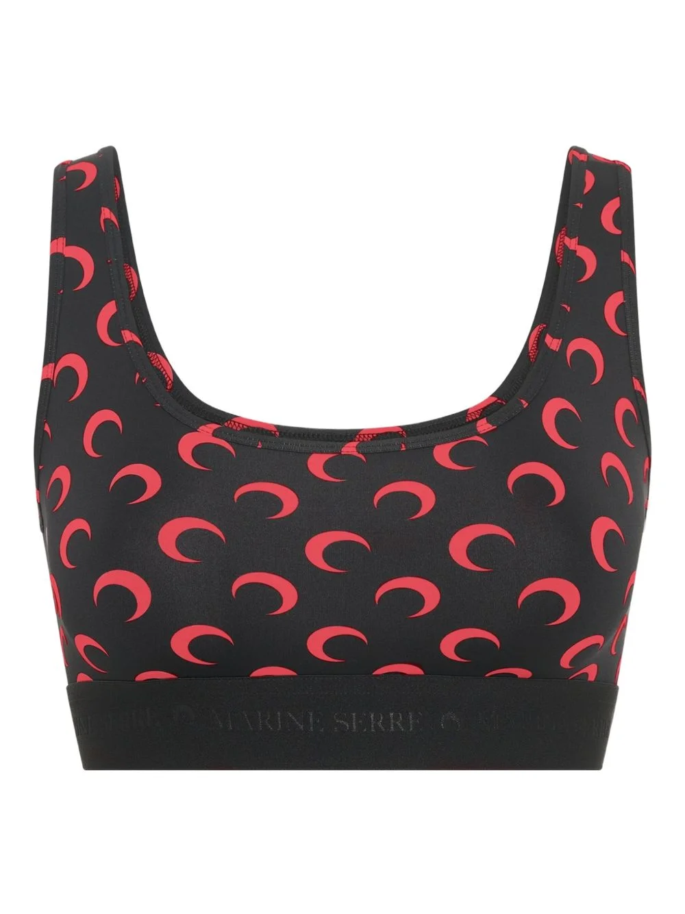 crescent moon-print sports bra Highlights - Black/red - Crescent moon print - Elasticated underband Imported Composition Polyamide 88%, Elastane 12% Washing instructions Read Manufacturer Guidelines