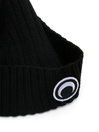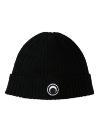 Crescent Moon ribbed wool beanie Described by the brand as an emblem of a 'new progressive fashion era', the Crescent Moon emblem is synonymous with Marine Serre. It decorates the brim of this ribbed wool beanie in a contrasting white tone. Highlights - Black - Recycled polyester - Ribbed knit - Crescent moon embroidery - Pull-on style - Turn-up brim Made in Italy Composition Wool 100% Washing instructions Machine Wash