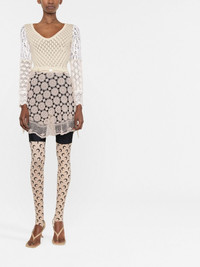 crochet mini dress Crafted from regenerated knitted panels, this crochet mini dress by Marine Serre exhibits the brand's exceptional craftsmanship and eco-conscious approach to design. Highlights - Cream white/light beige - Cotton - Panelled design - Crochet knit - Pointelle knit - Long sleeves - Button fastening Made in Italy Composition Cotton 100% SIZE & FIT Model measurements Height 5 ft 10 in(1.77 m) Bust/Chest 31.49 in(80 cm) Hips 33.85 in(86 cm) Waist 22.44 in(57 cm) FittingInformation This piece fits true to size. We recommend you get your regular size Designed for a close fit at the bust, waist and hips Made with a mid-weight fabric Washing instructions Dry Clean Only