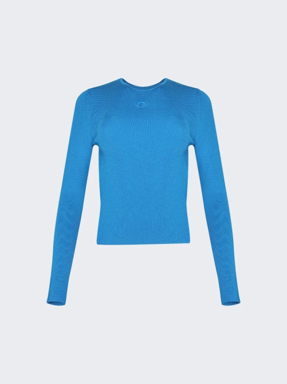 fine-ribbed sweater Highlights - Azure blue - Ribbed knit - Long sleeves - Round neck - Logo detail Imported Composition Viscose 98%, Elastane 2% Washing instructions Read Manufacturer Guidelines