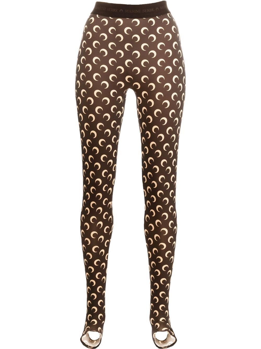 Fuseaux crescent moon-print stirrup leggings A brand signature, Marine Serre's crescent-moon motif speaks to their creative approach. It appears as an all-over design on these stirrup leggings, standing out thanks to the two-tone colourway. Highlights - Black/red - Crescent moon print - Elasticated waistband - Stirrup cuffs Imported Composition Polyamide 70%, Spandex/Elastane 30% SIZE & FIT Model measurements Height 5 ft 10 in(1.78 m) Bust/Chest 32.28 in(82 cm) Hips 35.03 in(89 cm) Waist 23.22 in(59 cm) Measurement INSIDE LEG 29.52 in(75 cm) HIPS 33.85 in(86 cm) WAIST 28.34 in(72 cm) FittingInformation This piece fits true to size. We recommend you get your regular size Cut for a close fit Made with a mid-weight stretch fabric Washing instructions Machine Wash