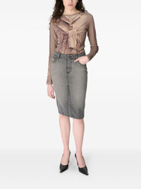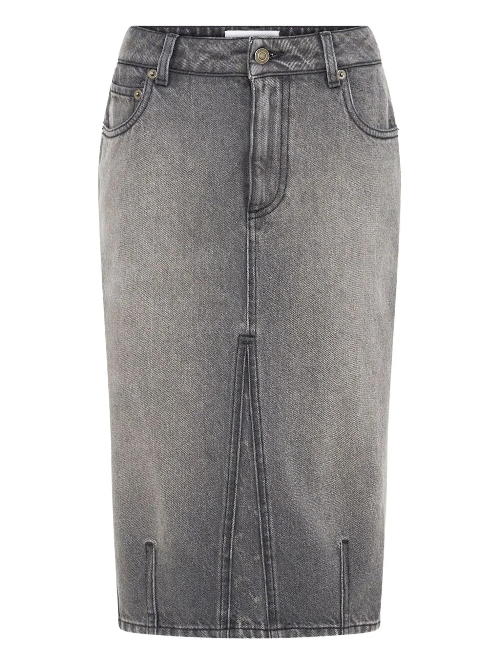 MOON LASER GREY WASH DENIM KNEE LENGTH SKIRT