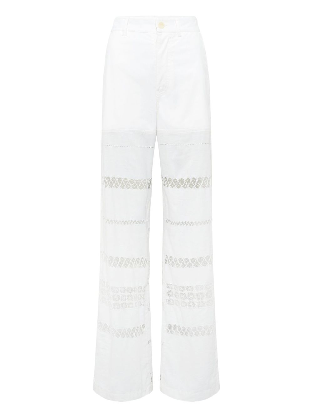 lace-panel trousers Highlights - White - Lace panels - Back patch pocket - Straight leg - Belt loops - Button fastening Imported Composition Cotton 100% Washing instructions Read Manufacturer Guidelines