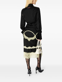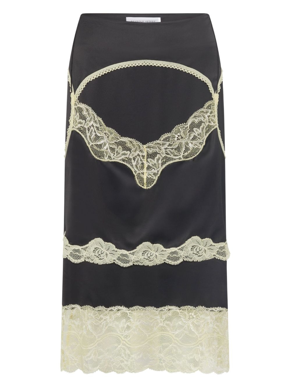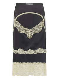 lace-panelled satin skirt Highlights - Black - Satin finish - Lace panelling - High waist - Midi length Imported Composition Viscose 100% Washing instructions Read Manufacturer Guidelines