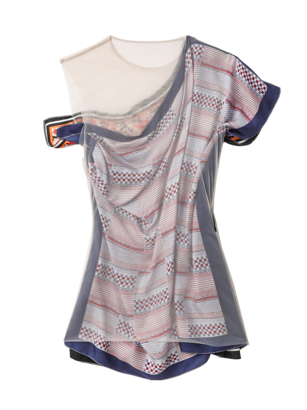 layered top Highlights - Grey - Crew neck - Single short sleeve - Asymmetric hem Made in France Composition Recycled Silk 100%, Recycled Polyamide 82%, Elastane 18%