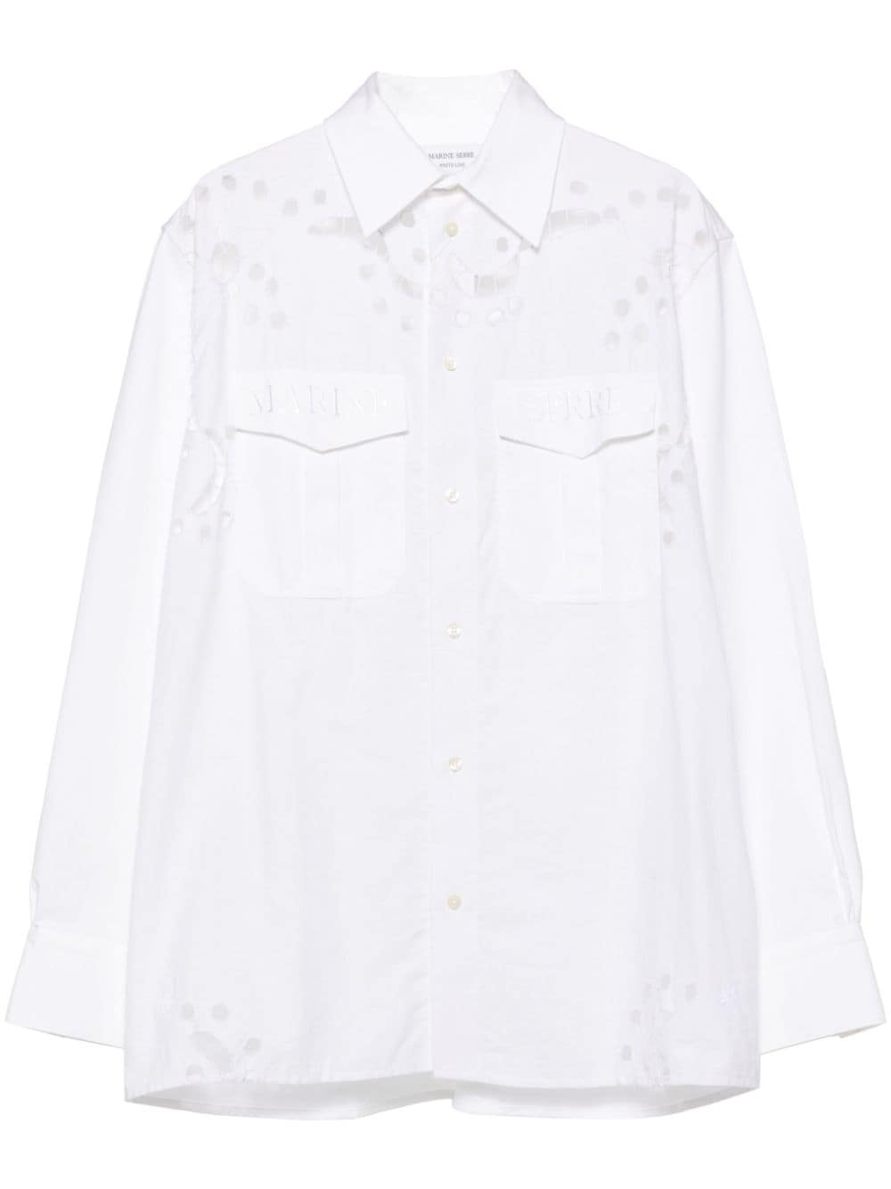 logo-embroidered shirt Highlights - White - Cotton - Embroidered logo at the chest - Two chest flap pockets - Cut-out detailing - Pointed flat collar - Long sleeves - Buttoned cuffs - Front button fastening - This product is crafted from upcycled materials so the one you receive may differ slightly from the item pictured. Imported Composition Cotton 100% SIZE & FIT Model measurements Height 5 ft 10 in(1.77 m) Bust/Chest 33.85 in(86 cm) Hips 37 in(94 cm) Waist 26.37 in(67 cm) FittingInformation Designed to be unstructured, offering a loose fit throughout Made from a midweight non-stretch fabric This piece fits true to size – take your usual size Washing instructions Hand Wash